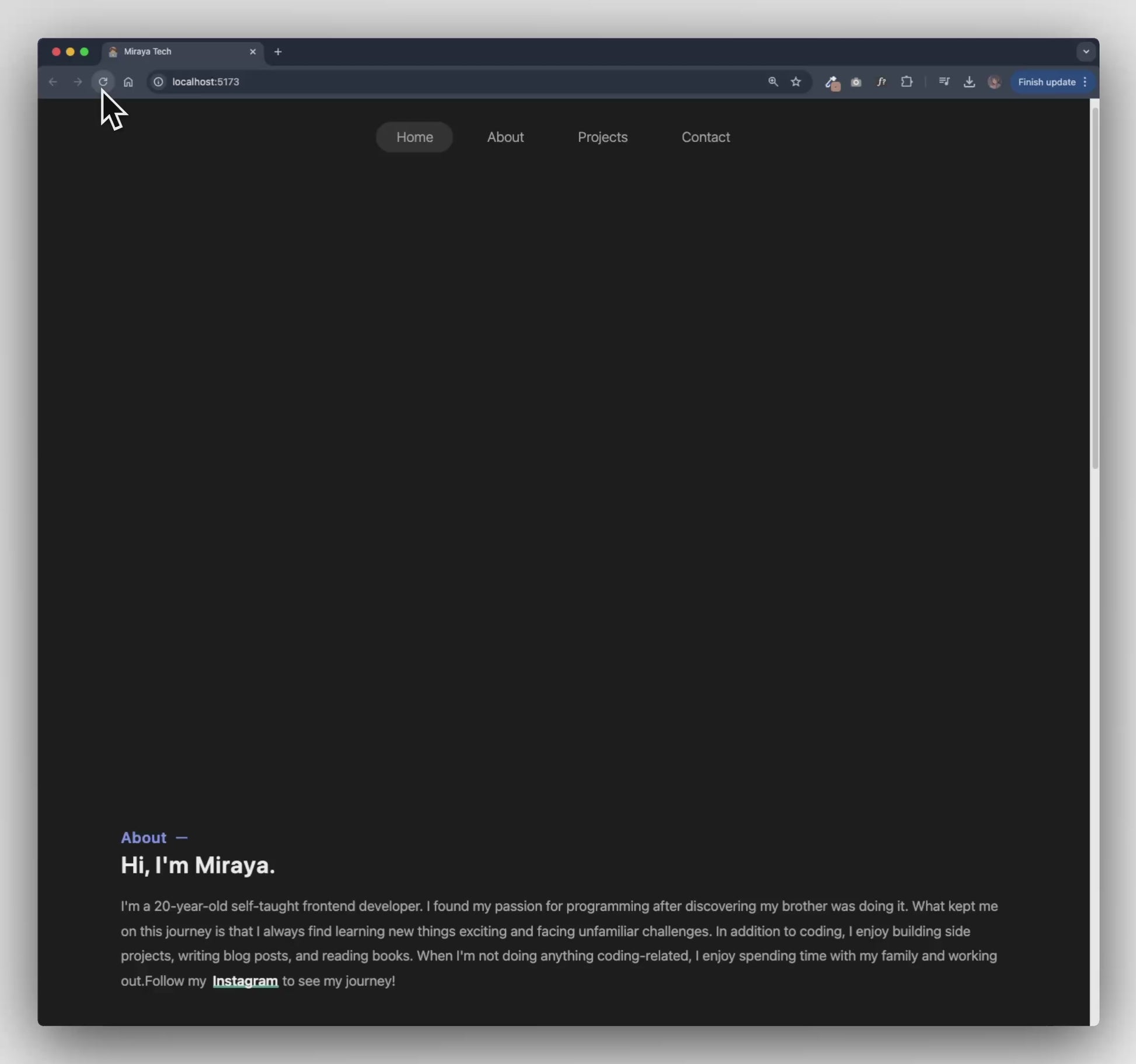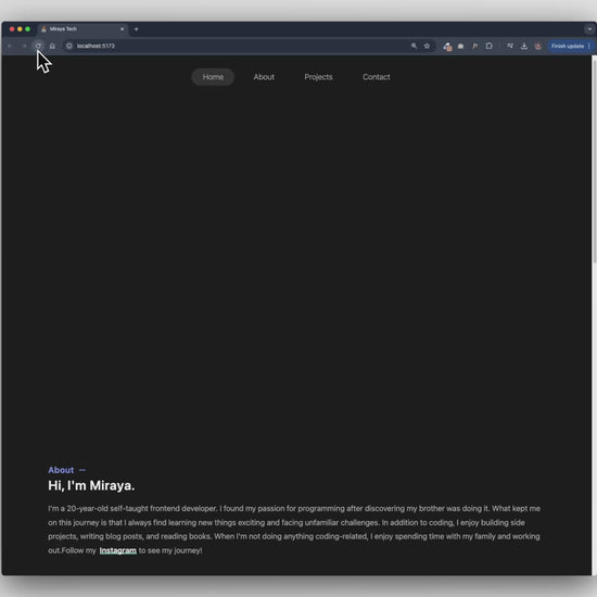 - Complete sections: Home, About, Projects, Contact