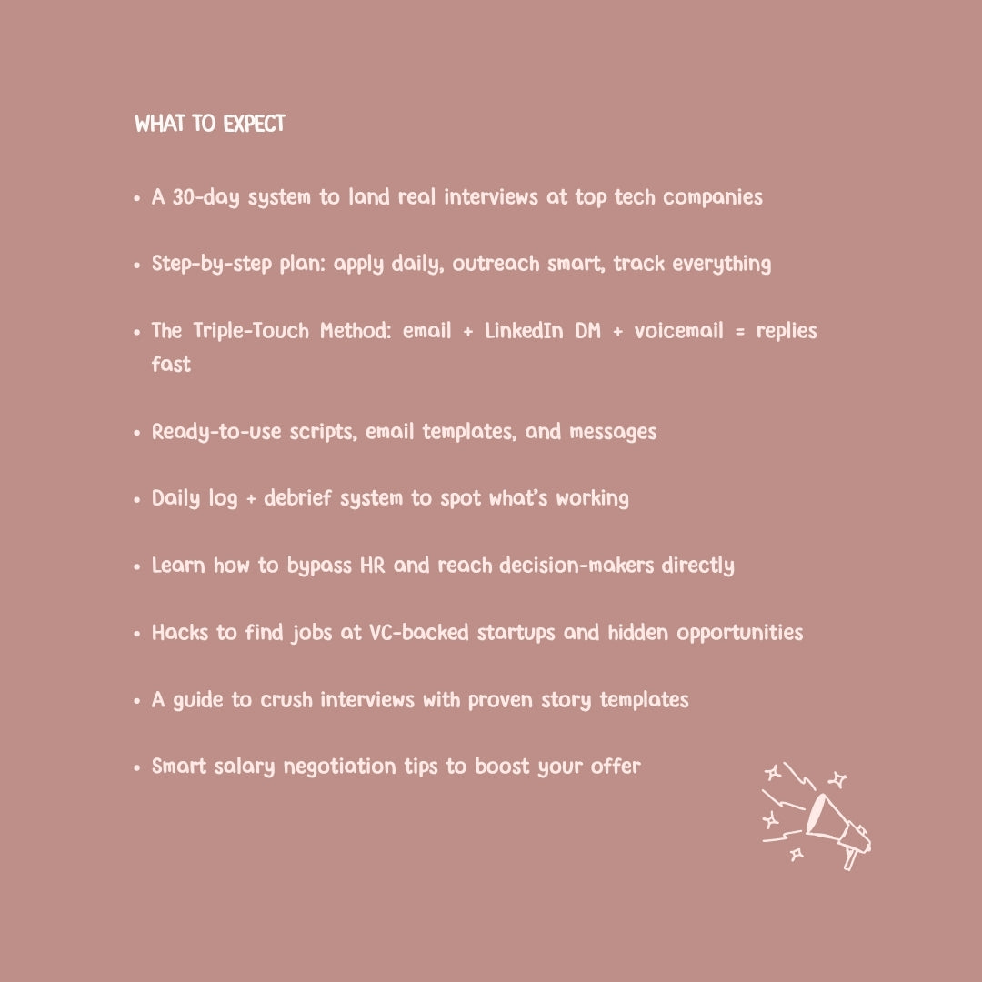 Miraya Tech’s 30-day playbook for firing off 50 laser-targeted applications a day, pinging hiring managers directly, and stocking your calendar with interviews by week four.