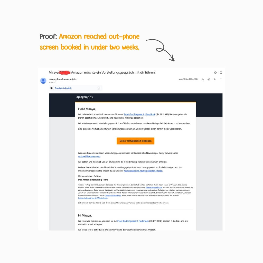 Miraya’s one-pager took her from zero connections to final round calls at Amazon and Vercel. No skill bars, no fluff, just result-packed bullets. Plug in your metrics, export to PDF, and start getting callbacks.