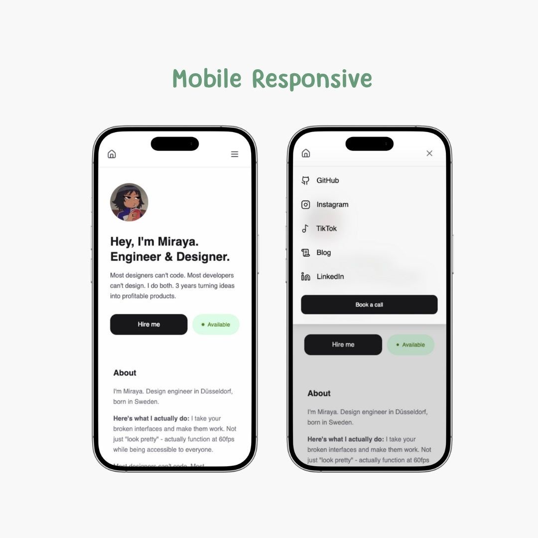 Comes with clear instructions to swap in your name, update your links, and start showcasing your projects.